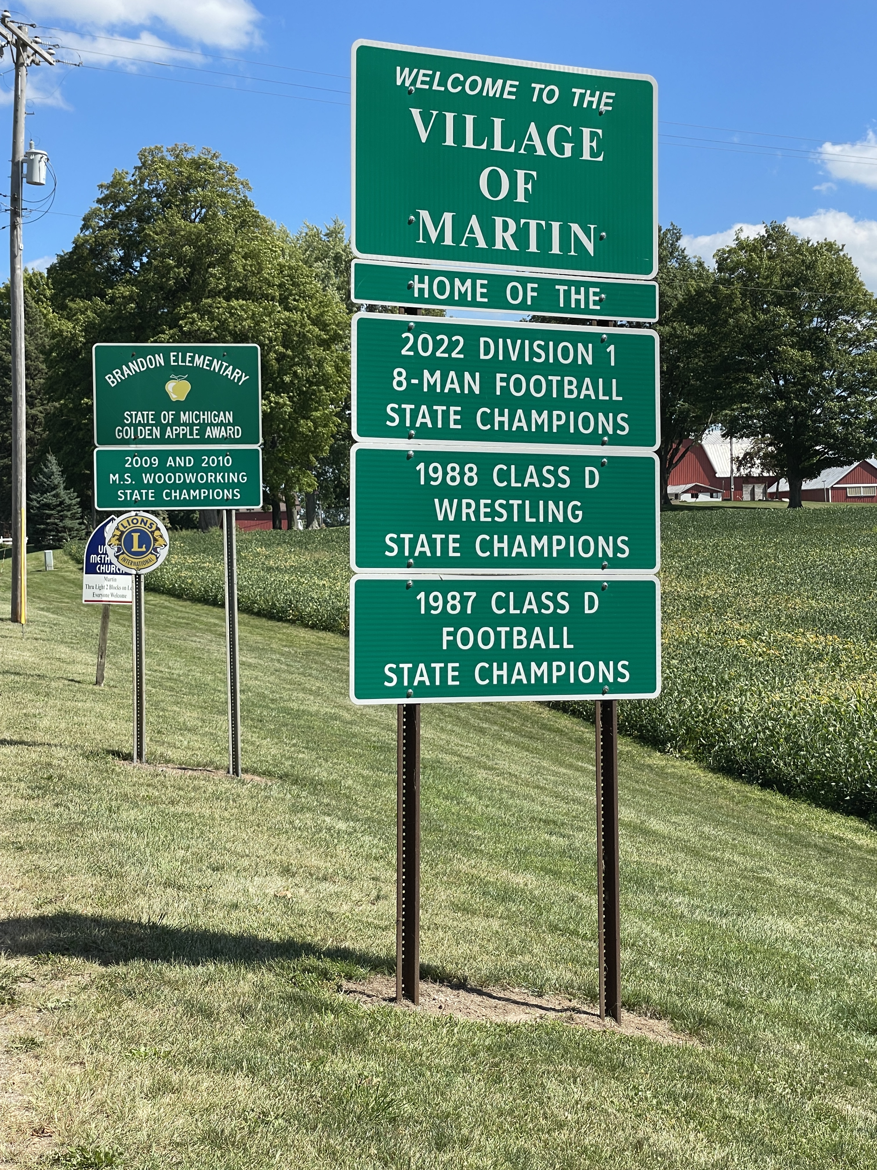 - The fact that Martin was good enough to win a couple of state titles in the same school year, but adapted to 8-man football and won another trophy. (They actually won back-to-back titles but the sign isn’t up there… yet)