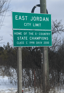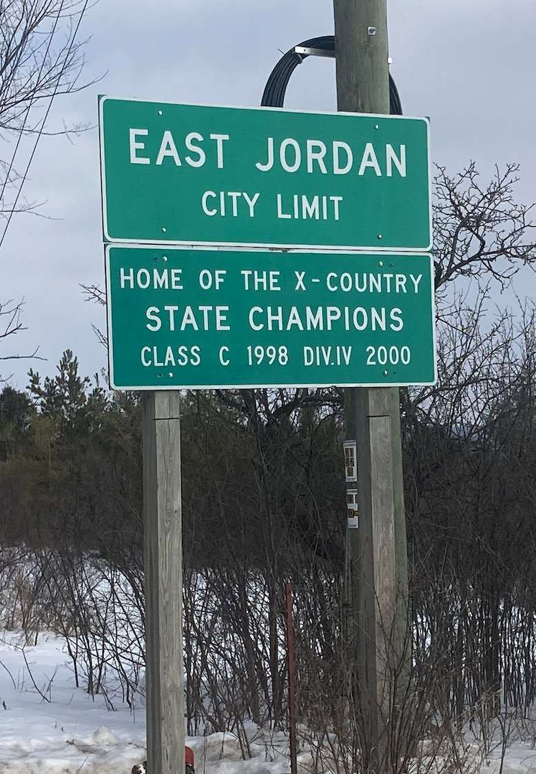 Maybe the hills of northwest Michigan make it ideal training for cross country runners because it seems as if there are a lot of these types of signs in this area.