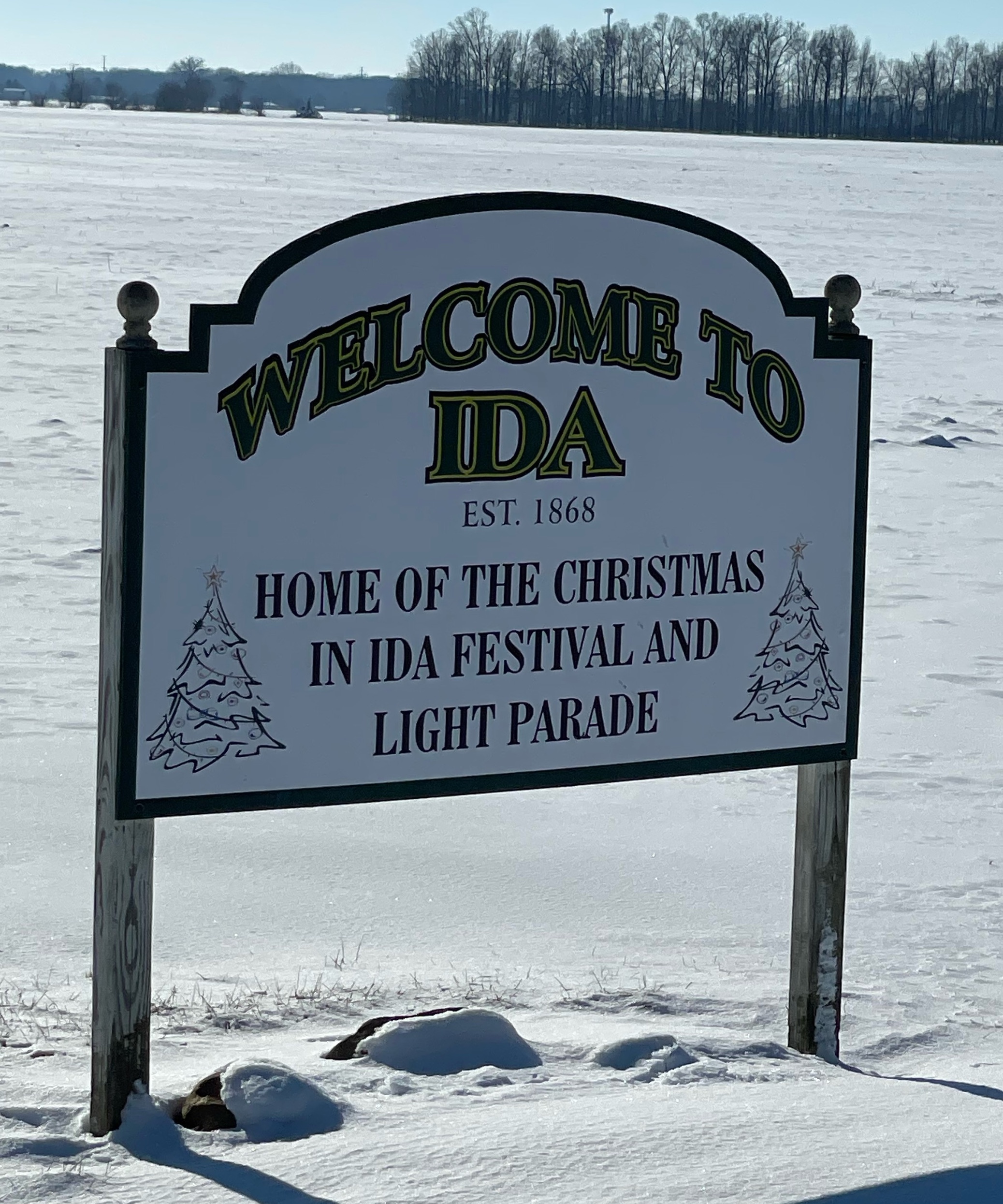I’m glad we found this sign when there was snow on the ground, even if it was in January. The Christmas in Ida Festival and Light Parade takes place the first weekend in December and attracts 50,000+ visitors.
