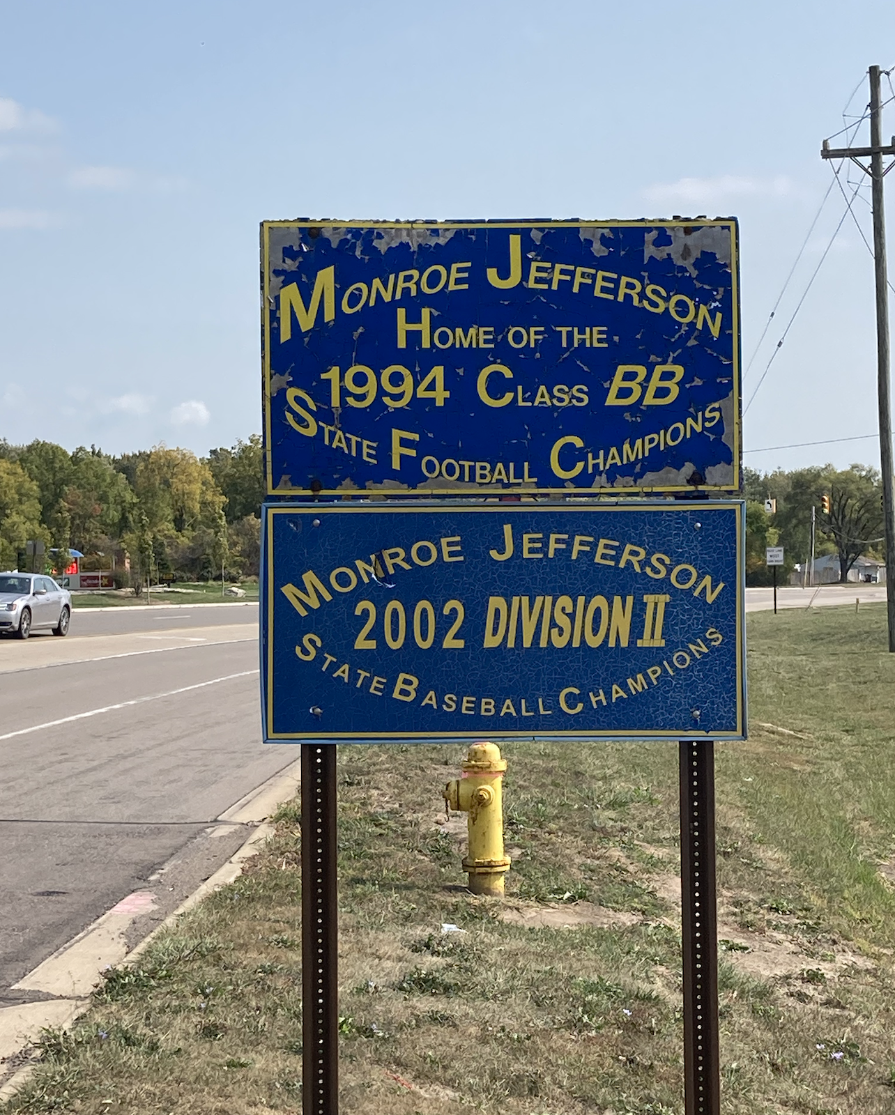 So Monroe Jefferson High School is not in Monroe, it’s in Newport about 9 miles away. So I was torn on whether to put this sign under Monroe or Newport.