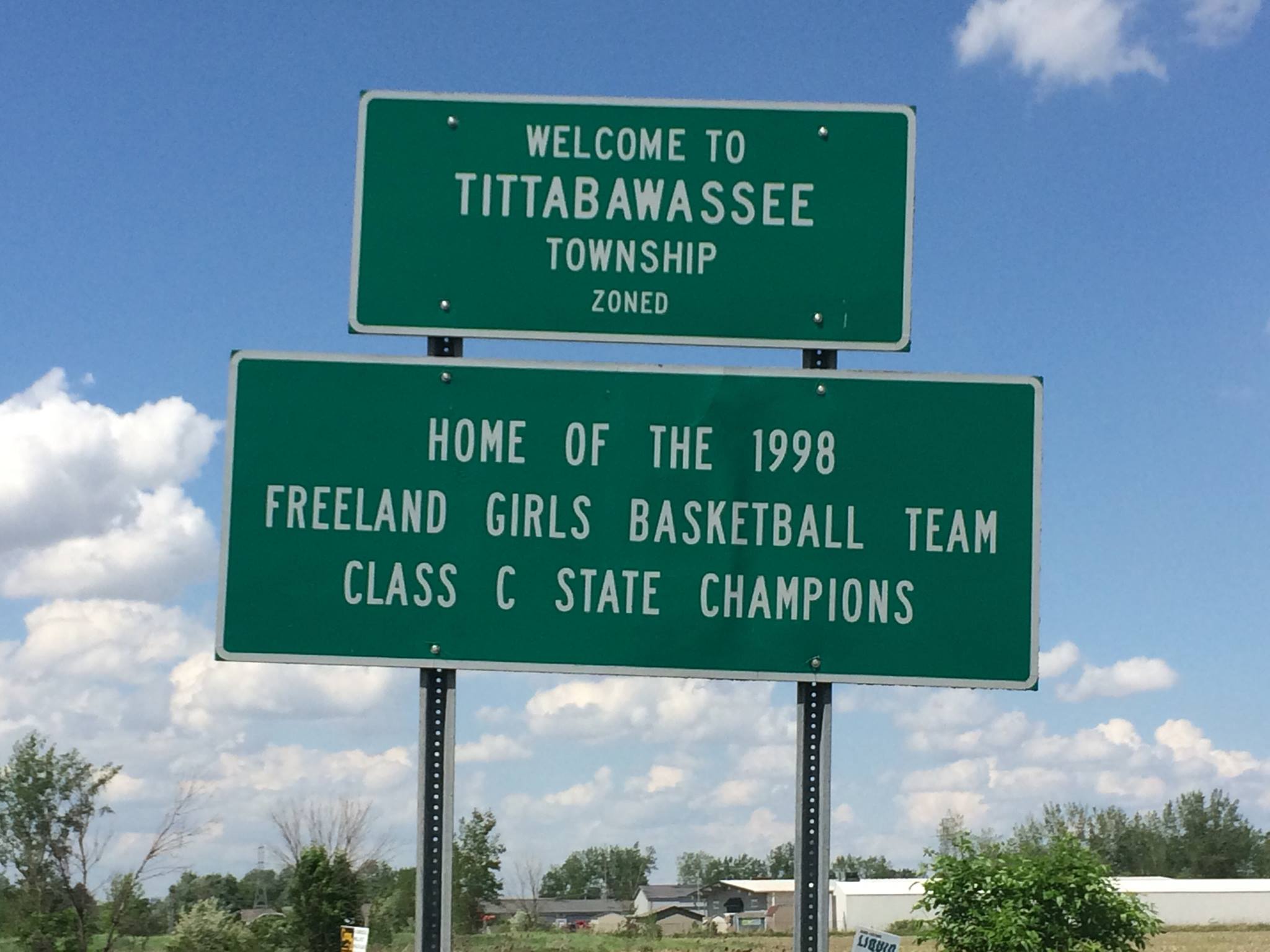 I thought this sign looked somewhat familiar and then I looked at the Freeland page and what do you know, there was that 1998 Girls Basketball State Championship sign.