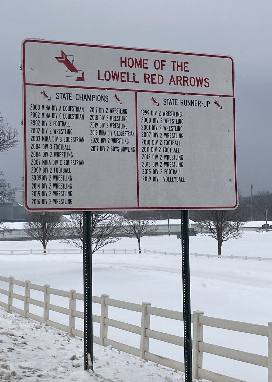 A lot of championships, including 7 state wrestling championships in a row (actually 8 but we took this picture in March before the 2021 finals.) I also like how it has lots of room for additions.