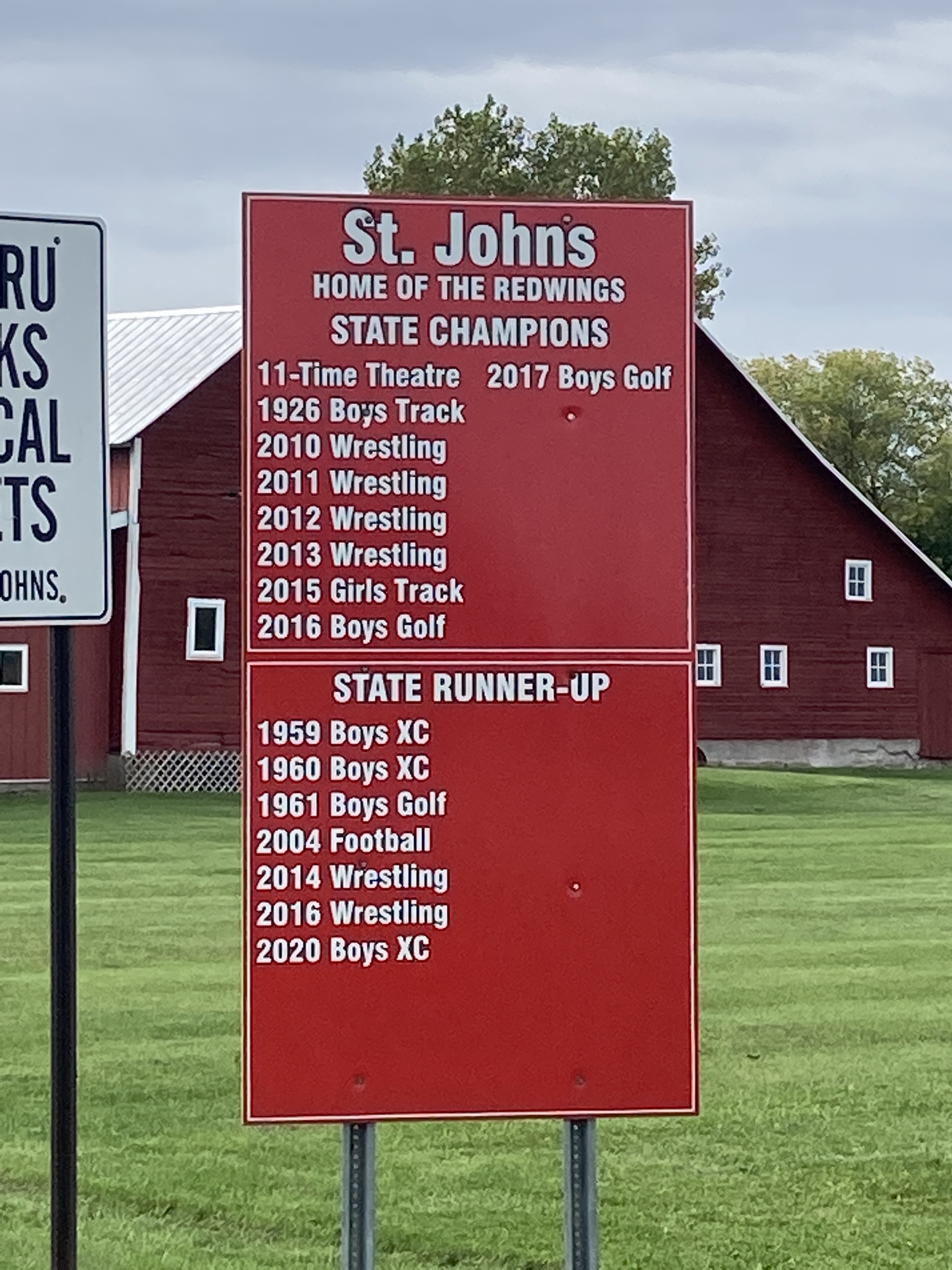 I always like when signs match the school colors and I like the fact that they also show the State Runner Up teams, making a state final is quite an achievement in itself.