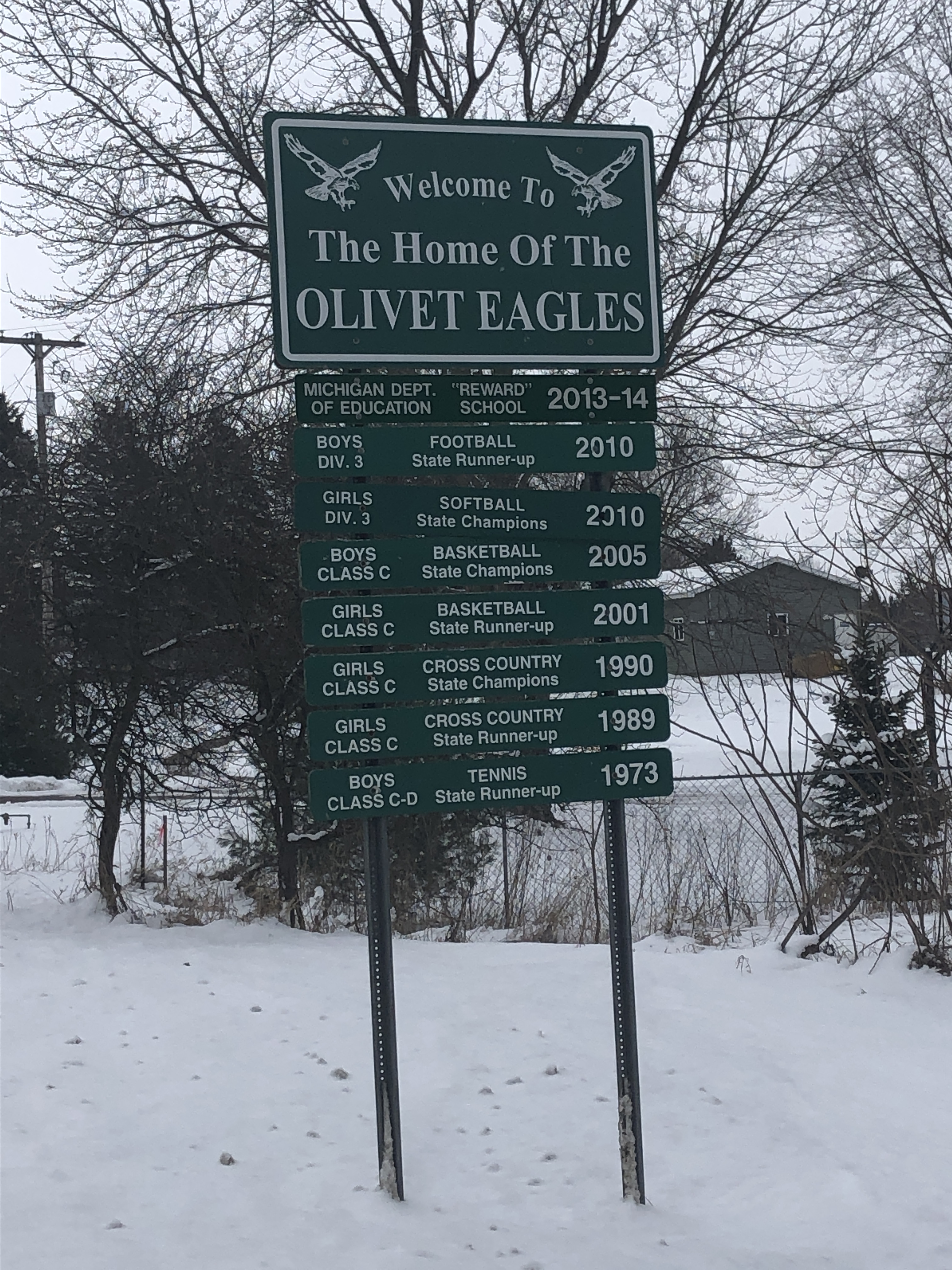 The only thing I don’t like is the wording at the top. It’s not quite confusing but it is a little atypical. Maybe it’s me, but would it read better if it said: Welcome to Olivet Home of the Olivet Eagles.