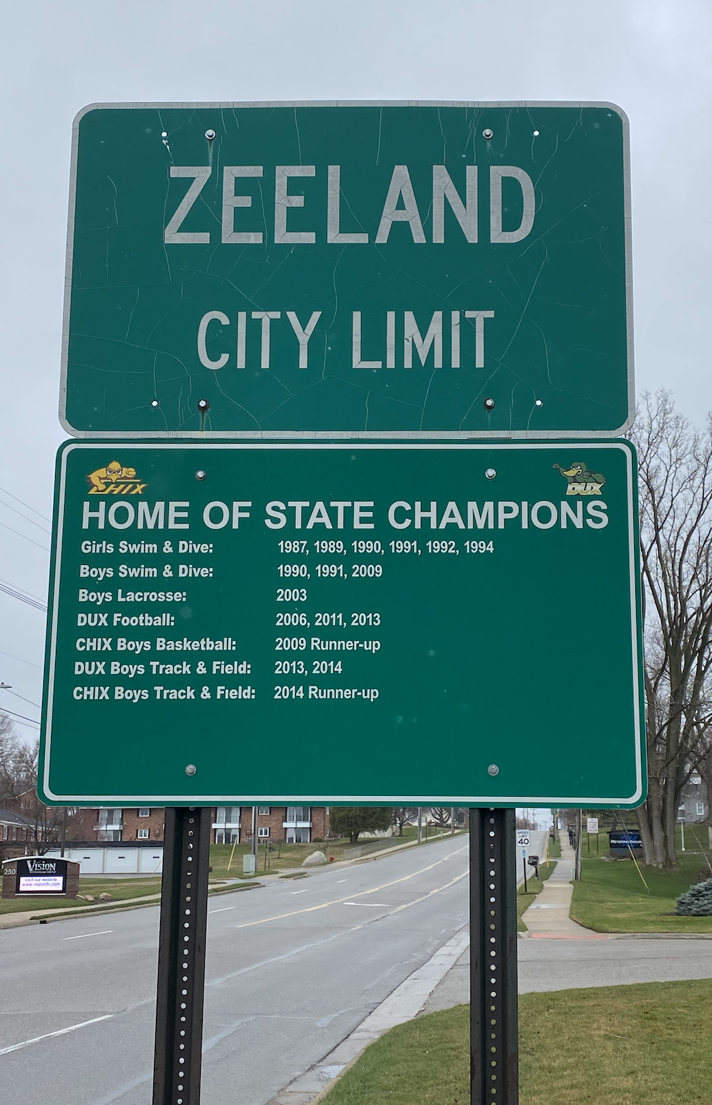 After a little internet searching I found out that the city of Zeeland has two high schools – Zeeland East (Chix) and Zeeland West (Dux).